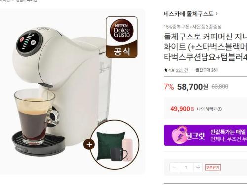 돌체구스토 커피머신 지니오S +머그325ml+쿠션담요+텀블러400ml