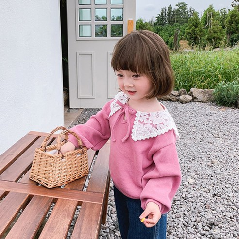 꼰띠키즈 여아용 리본레이스 티셔츠