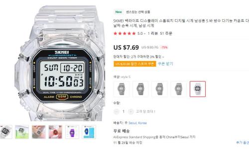| 쇼핑몰 이름 : | 알리익스프레스 |