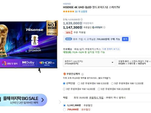 HISENSE 4K UHD QLED 85인치 85Q6N